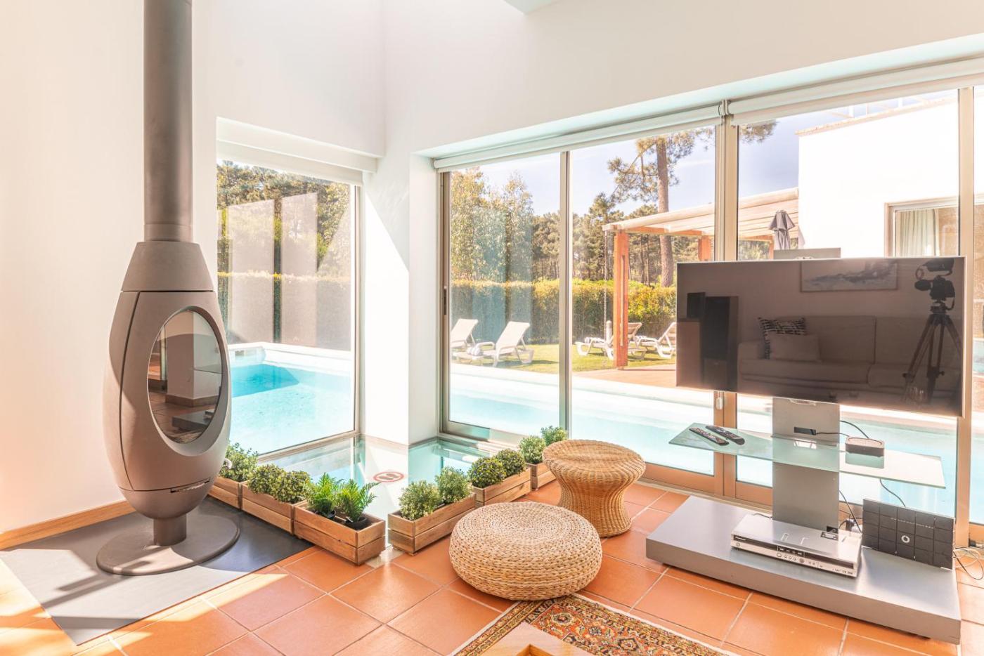 Villa with Private Pool. This villas standout features are the private pool and fireplace. Featuring 5 bedrooms and 4 bathrooms with a bath, this spacious villa offers a well-fitted kitchen and a terrace. Meals can be prepared in the kitchen, which is equipped with a refrigerator, a dishwasher, kitchenware and an oven. The air-conditioned villa provides a TV with satellite channels, a washing machine, a tea and coffee maker, a barbecue as well as garden views. The unit has 7 beds.