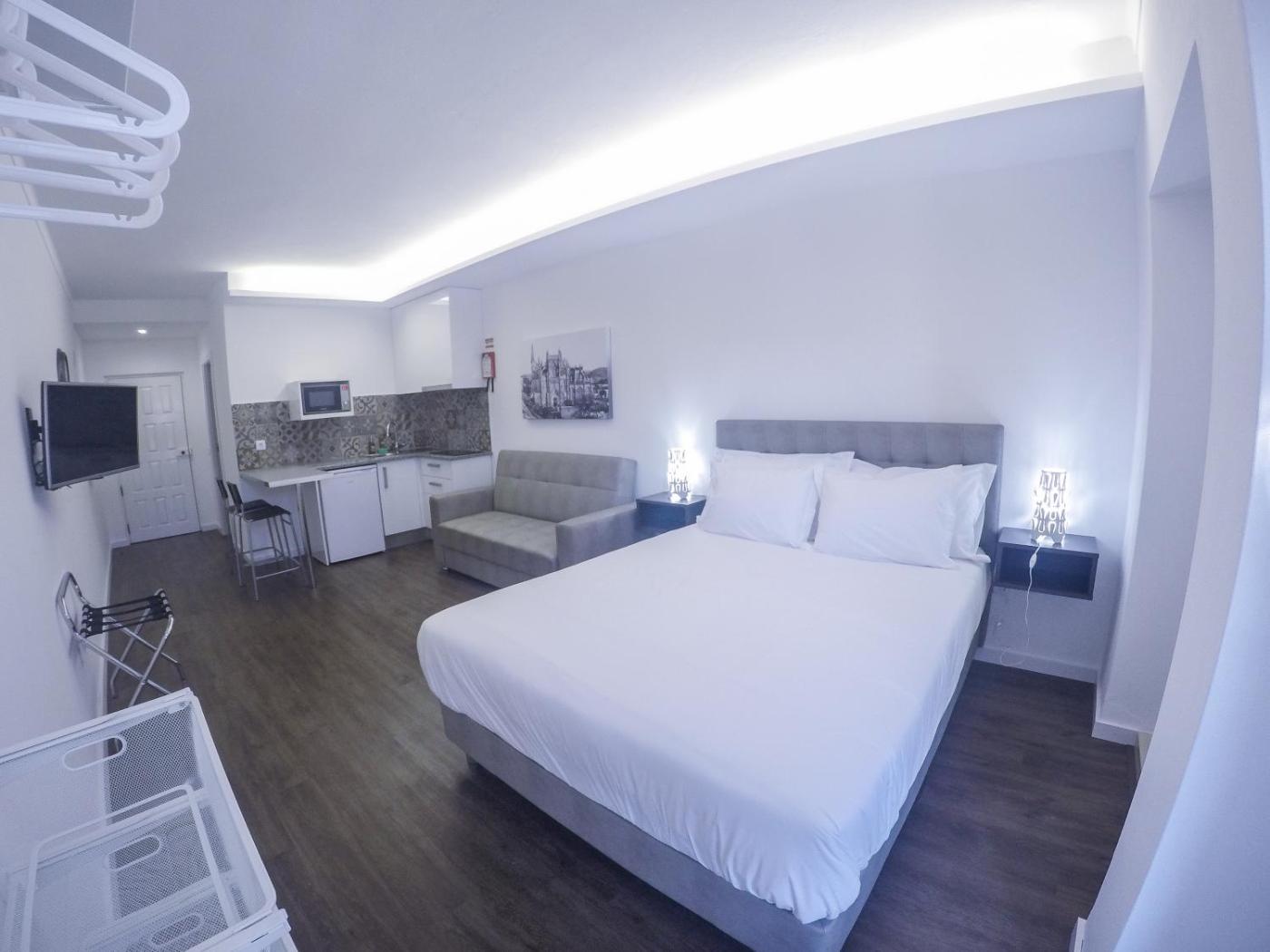 Estudio c Vista Mosteiro 3. Providing free toiletries, this studio includes a private bathroom with a shower and a hairdryer. The fully equipped kitchen has a stovetop, a refrigerator, kitchenware and a microwave. The studio features parquet floors, a seating area with a flat-screen TV with cable channels, a private entrance, a tea and coffee maker, as well as a dining area. The unit offers 2 beds. ;
