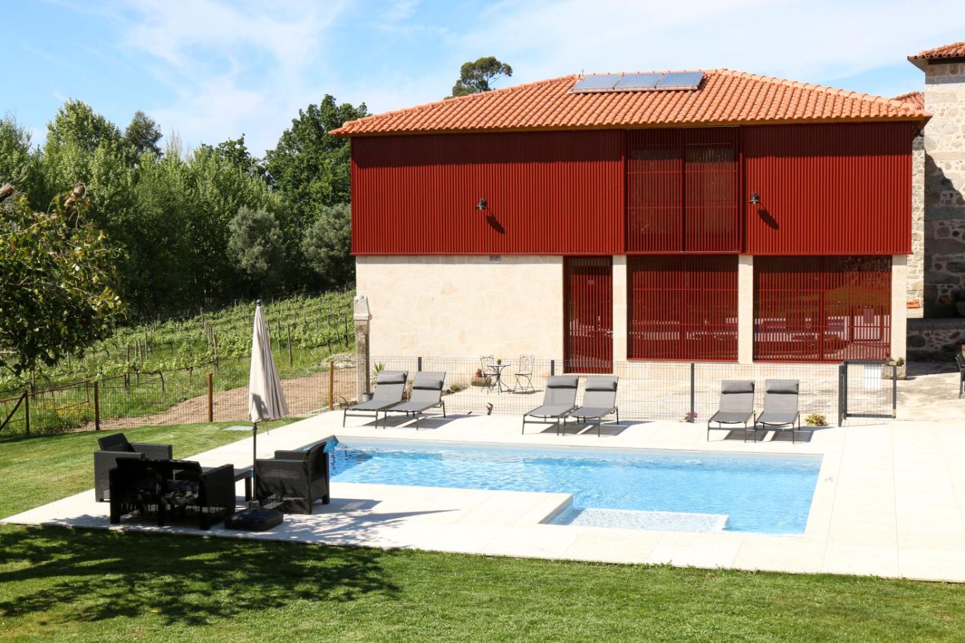 Featuring pool views, Quinta de Chousas - Braga - Agroturismo offers accommodation with an outdoor swimming pool, free bikes and a garden, around 9.2 km from University of Minho - Gualtar Campus. Boasting a shared kitchen, this property also provides guests with a picnic area. The farm stay provides rooms with air conditioning, free private parking and free WiFi.