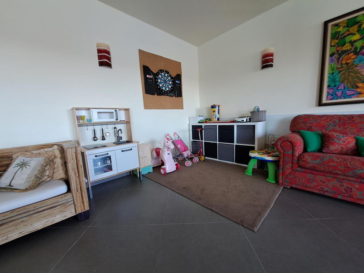 The air-conditioned holiday home is composed of 4 separate bedrooms, a fully equipped kitchen, and 5 bathrooms. A flat-screen TV is provided.