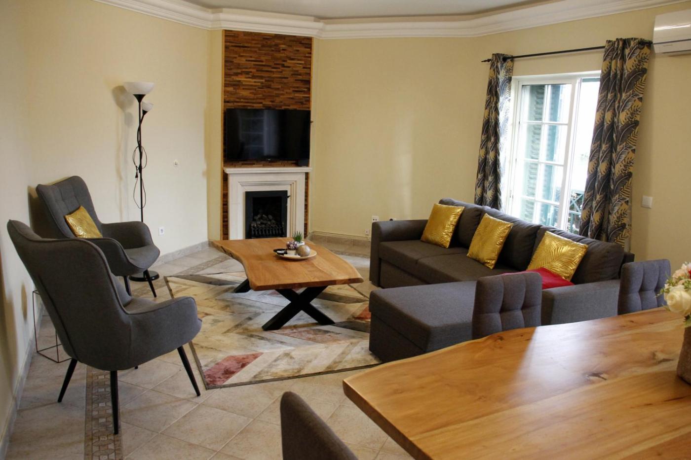 Two-Bedroom Apartment. Guests will have a special experience as the apartment offers a fireplace. Guests will find a stovetop, a refrigerator, a dishwasher and kitchenware in the kitchen. The apartment also offers a barbecue. The spacious air-conditioned apartment provides a flat-screen TV with satellite channels, a washing machine, a private entrance, a tea and coffee maker as well as a quiet street view. The unit offers 4 beds.