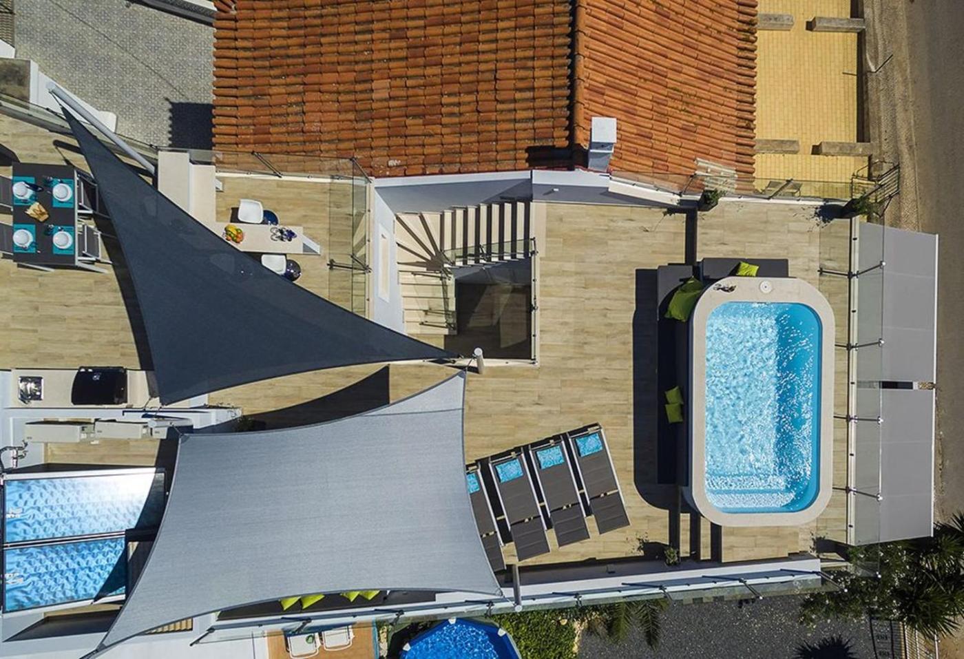 Two-Bedroom Villa. Guests will have a special experience as this villa provides a private pool. Featuring a private entrance, this spacious villa also is comprised of 2 separate bedrooms, 2 bathrooms with a shower, a kitchen and a dining area. Guests will find a stovetop, a refrigerator, a dishwasher and kitchenware in the well-fitted kitchen. The villa also has a barbecue. The air-conditioned villa offers a TV, a washing machine, a tea and coffee maker, a wardrobe as well as sea views. The unit offers 3 beds.