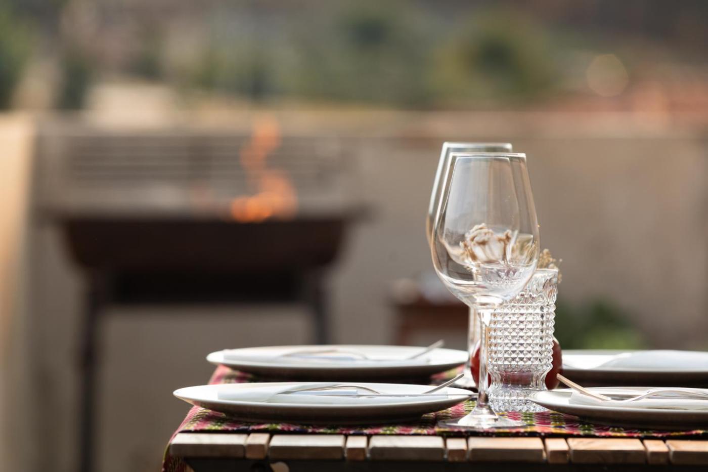 Two-Bedroom Townhouse. This holiday homes special feature is the fireplace. Boasting a private entrance, this air-conditioned holiday home includes 1 living room, 2 separate bedrooms and 1 bathroom with a shower and a bidet. Guests will find a stovetop, a refrigerator, a dishwasher and kitchenware in the kitchen. The holiday home also features a barbecue. Featuring a terrace with garden views, this holiday home also offers a tea and coffee maker and a flat-screen TV with cable channels. The unit has 3 beds.