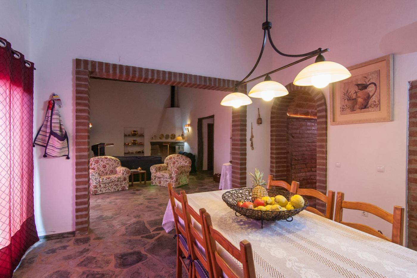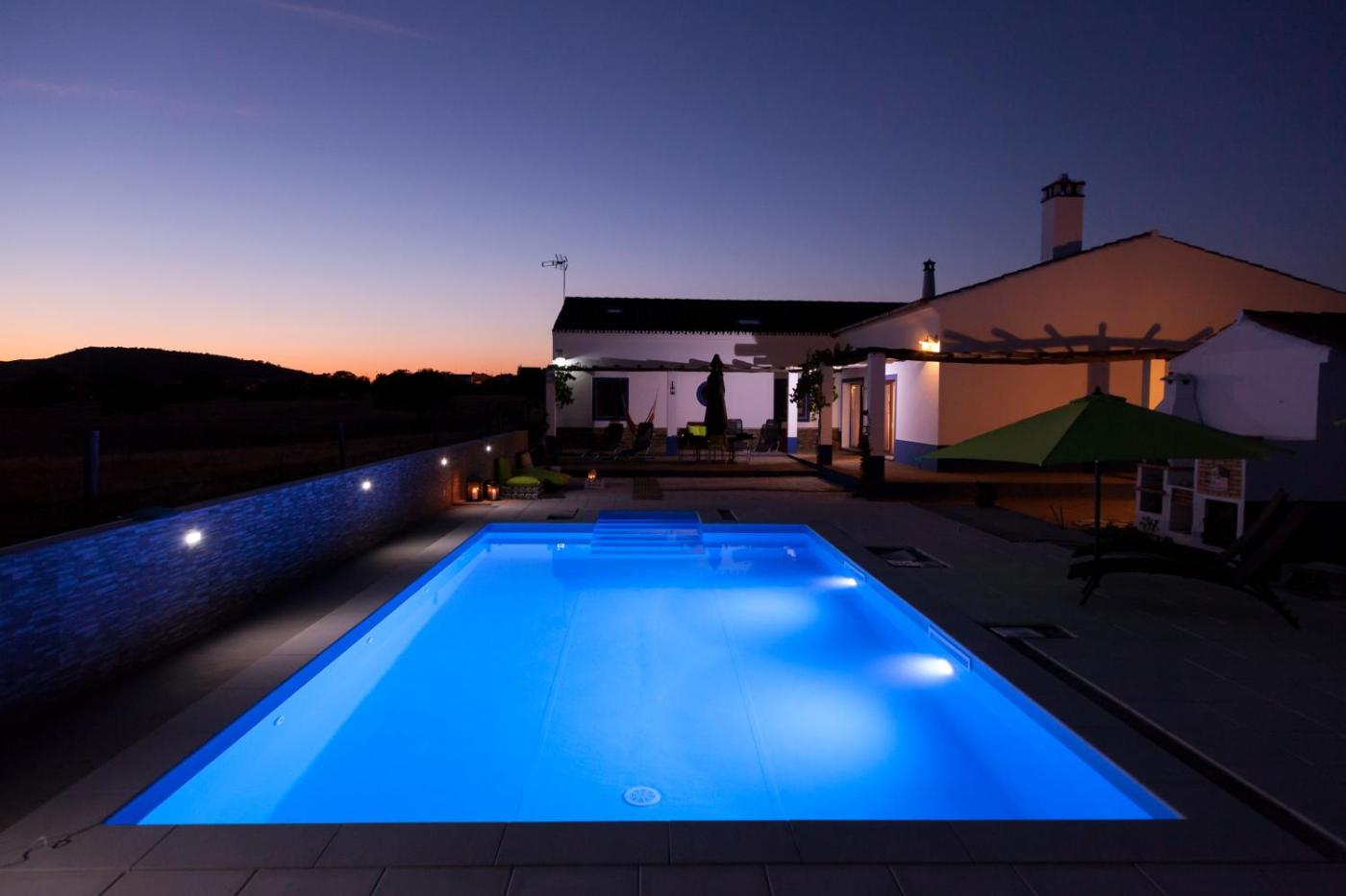Villa. The Monte Farropo features a total of 6 bedrooms and 2 bathrooms, which are shared by the rooms. The rustic and familial property has a lounge area with sofas, a fireplace, gaming console, DVD player and a TV. The air-conditioned unit features a traditional Alentejo décor, with several typical decorative pieces. Guests are welcome to use the house’s full kitchen in order to cook their own meals in comfort, enjoying them in the indoor dining area, or al fresco, overlooking the green countryside.