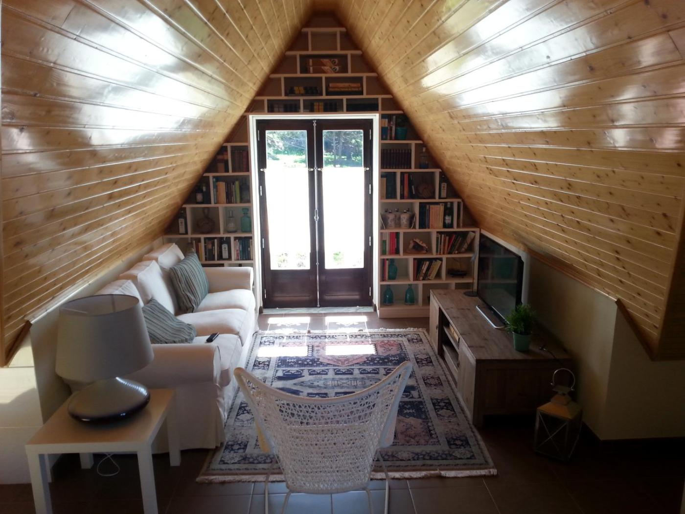 Three-Bedroom House. Providing a cosy setting, the living room features walls covered with shelves full of books. Some bedrooms have a mosquito net and strong colours. The house features sloped ceilings and the livingdining room opens to the fully equipped kitchen. Barbecue facilities are available outdoors.
