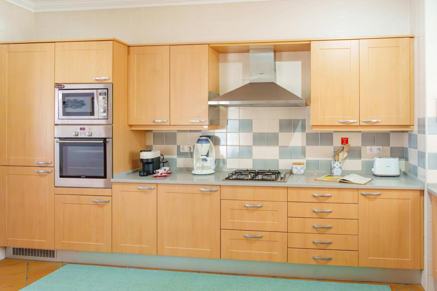 The spacious apartment has 3 bedrooms, a TV with cable channels, a fully equipped kitchen with a dishwasher and an oven, a washing machine, and 2 bathrooms with a bath.