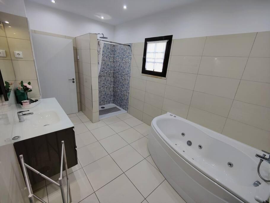 Three-Bedroom House. This holiday homes special features are the pool with a view and the fireplace. Featuring a private entrance, this spacious holiday home also comprises 3 bedrooms, a seating area and 1 bathroom with a walk-in shower and a bath. Guests will find a stovetop, a refrigerator, a dishwasher and kitchenware in the kitchen. The holiday home also provides guests with a barbecue. The air-conditioned holiday home provides a flat-screen TV with satellite channels, soundproof walls, a coffee machine, a dining area as well as garden views. The unit offers 4 beds.