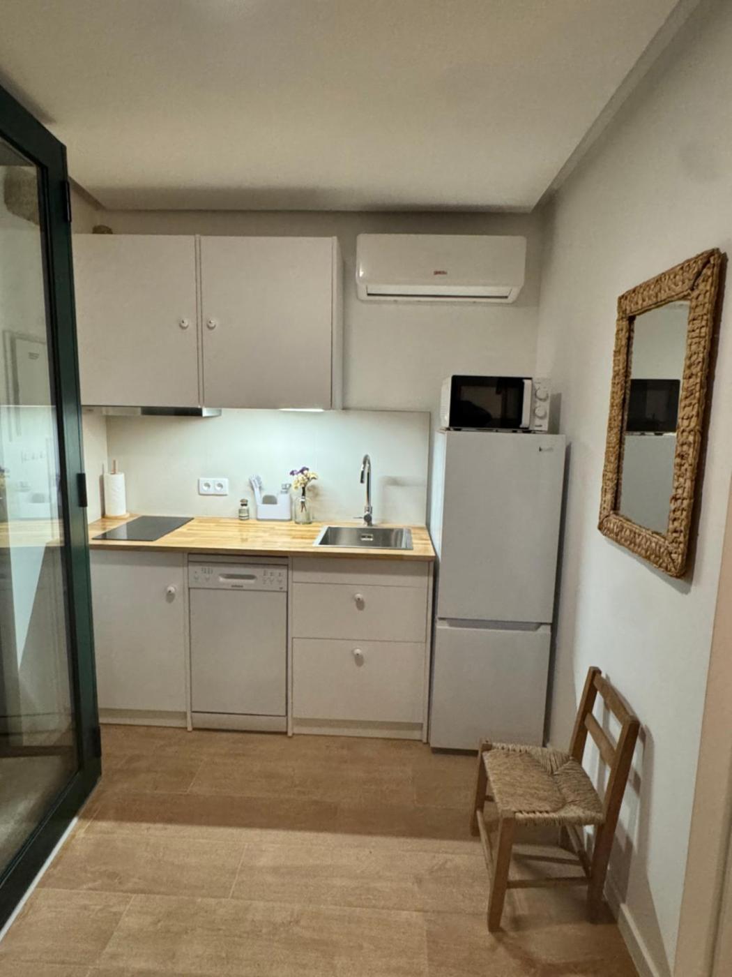 One-Bedroom Apartment. Featuring a private entrance, this air-conditioned apartment comprises a kitchen, 1 bedroom and 1 bathroom with a walk-in shower and a hairdryer. Meals can be prepared in the kitchen, which is equipped with a stovetop, a refrigerator, a dishwasher and kitchenware. Boasting a terrace with garden views, this apartment also provides a tea and coffee maker and a flat-screen TV. The unit offers 2 beds.