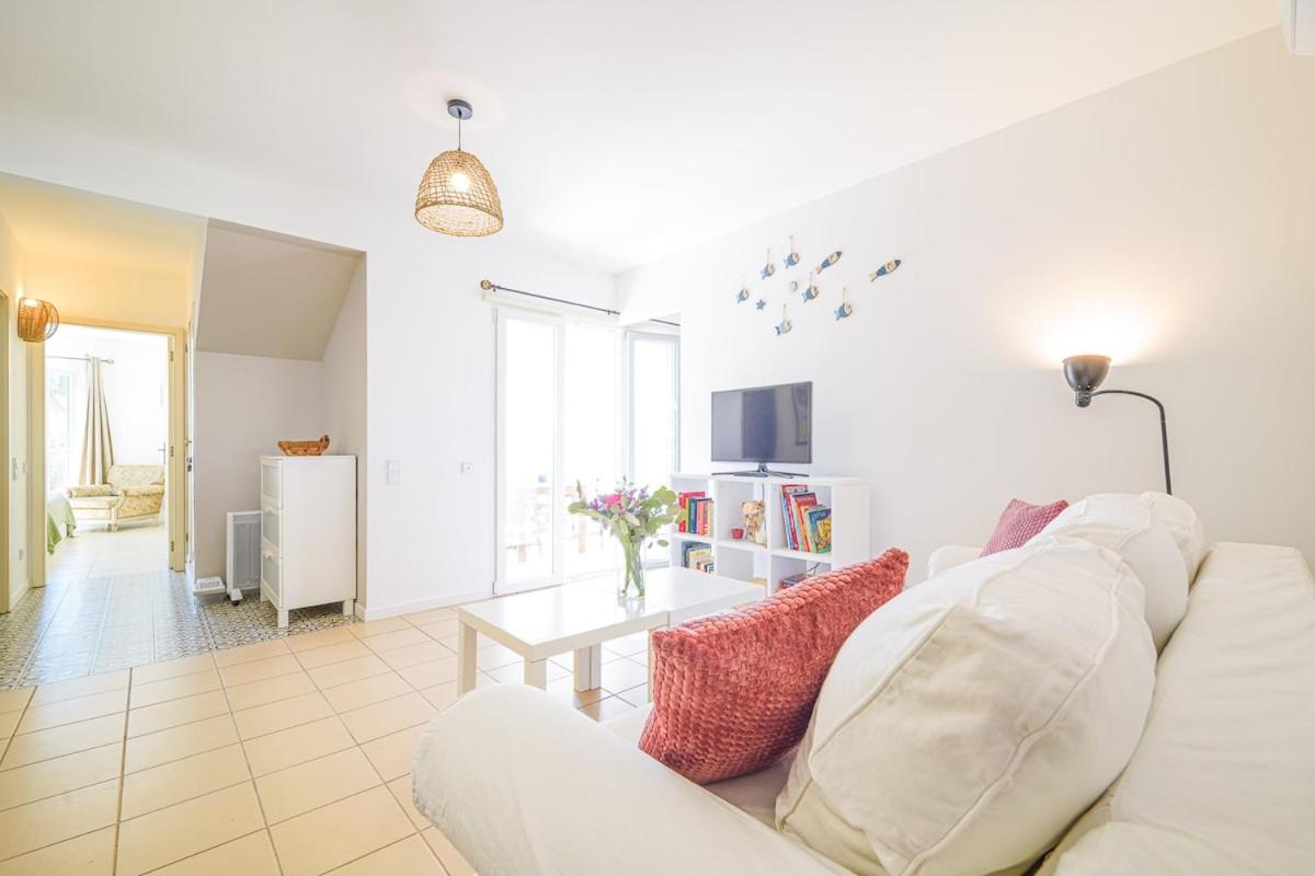 The holiday home with a terrace and sea views has 2 bedrooms, a living room, a flat-screen TV, an equipped kitchen with a dishwasher and an oven, and 1 bathroom with a shower. Towels and bed linen are available in the holiday home. The property has an outdoor dining area.