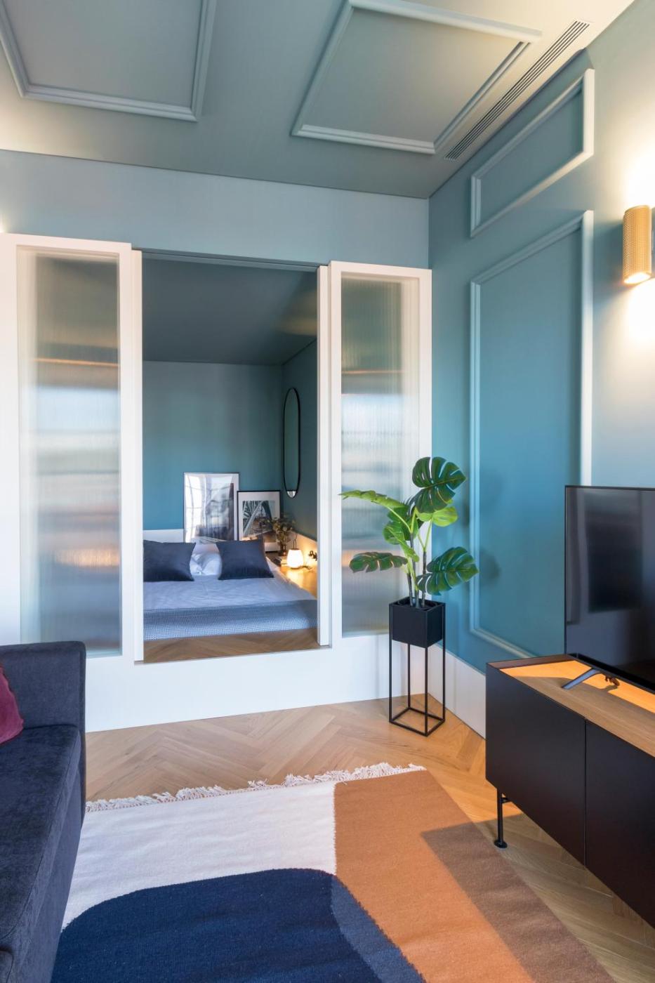 One-Bedroom Apartment. Featuring a private entrance, this air-conditioned apartment comprises 1 living room, 1 separate bedroom and 1 bathroom with a shower and a hairdryer. Guests can make meals in the kitchen that is equipped with a stovetop, a refrigerator, a dishwasher and kitchenware. The apartment features parquet floors, a seating area with a flat-screen TV, a washing machine, soundproof walls as well as river views. The unit offers 2 beds.