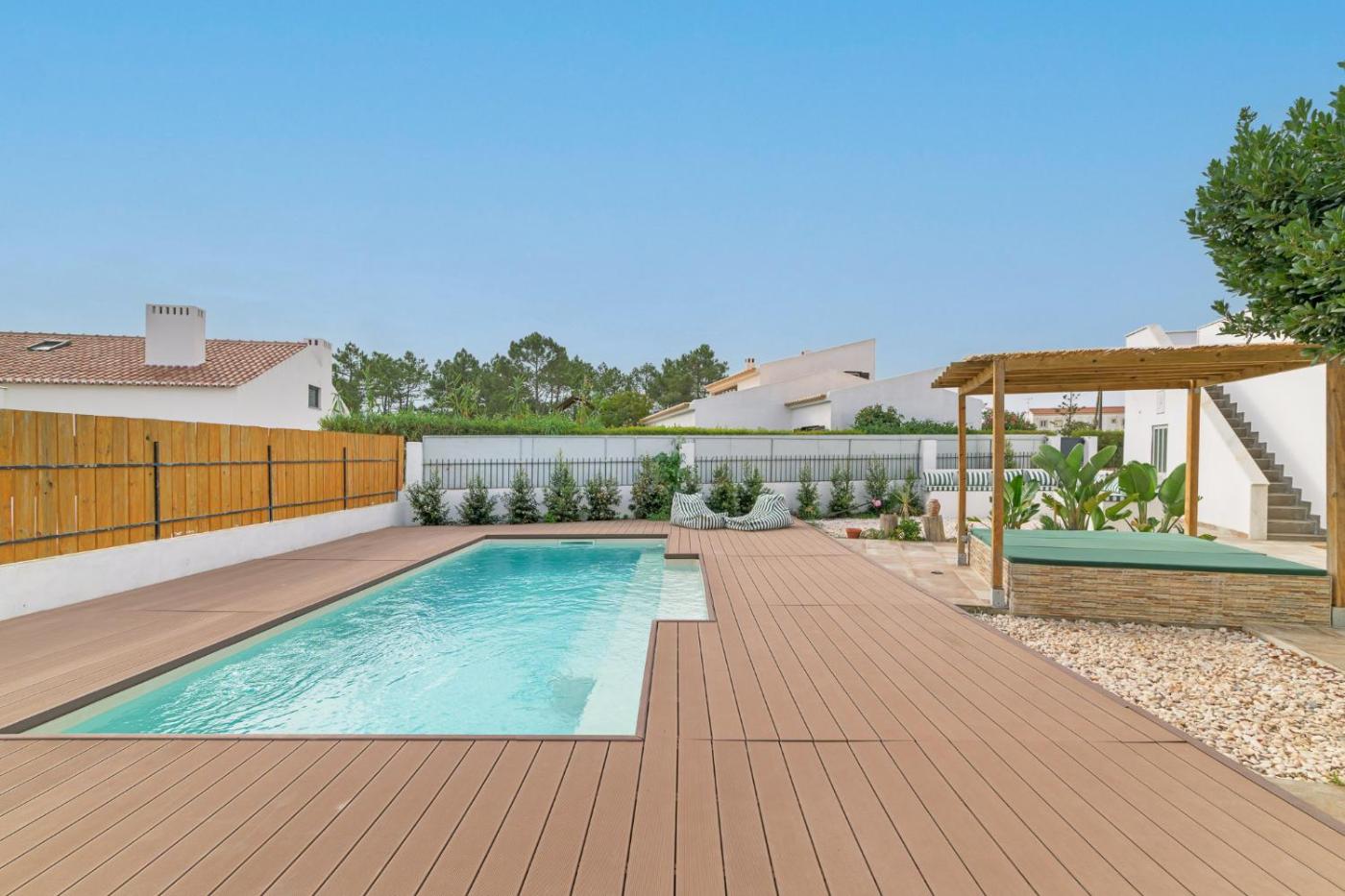 Two-Bedroom House. Guests will have a special experience as this holiday home provides a pool with a view. Featuring a private entrance, this holiday home is comprised of 1 living room, 2 separate bedrooms and 1 bathroom with a shower and a hairdryer. The well-equipped kitchen features a stovetop, a refrigerator, kitchenware and a microwave. Boasting a terrace with pool views, this holiday home also offers a washing machine and a flat-screen TV with cable channels. The unit offers 3 beds.