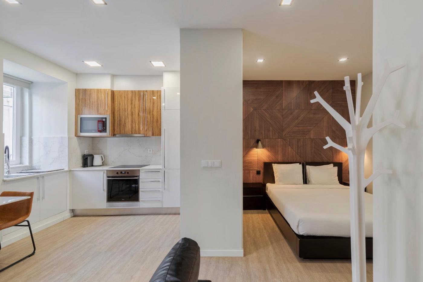 One-Bedroom Apartment. This air-conditioned apartment includes 1 living room, 1 separate bedroom and 1 bathroom with a walk-in shower. In the kitchen, guests will find a stovetop, a refrigerator, kitchenware and a microwave. Boasting a balcony with a quiet street view, this apartment also offers a tea and coffee maker and a flat-screen TV with streaming services. The unit has 2 beds.