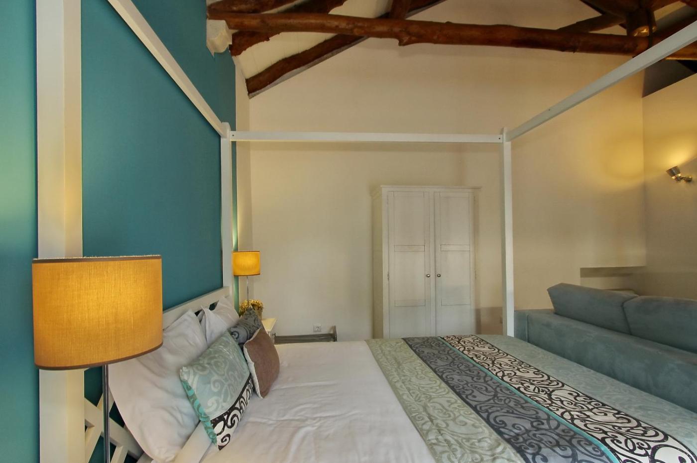 Double Room with Sofa Bed. This rooms contains a sofa and has extensive views of the garden. It comes with a flat-screen TV and teacoffee facilities. In front of Turquoise Room. ;